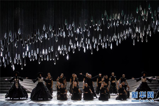 演員在音樂舞劇《云繡彝裳》第五章節(jié)“絲路云裳”中表演(11月15日攝)。新華社記者胡超攝