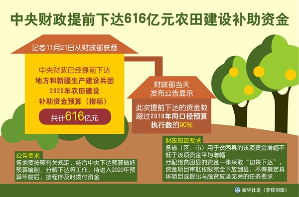 圖表:中央財政提前下達(dá)616億元農(nóng)田建設(shè)補(bǔ)助資金 新華社發(fā) 李棟 制圖