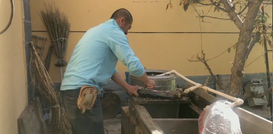 “童家大院”門前,50多歲的張淑琴正在清洗著農(nóng)家菜,準(zhǔn)備腌菜過冬。