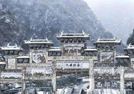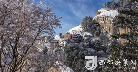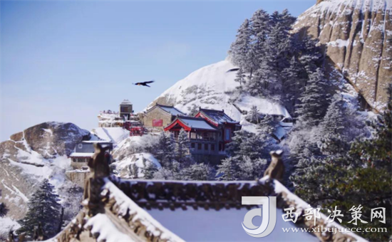 華山的雪景不僅是銀白的世界,而是猶如千姿百態(tài)的雪雕。雪霽,便有“林海玉樹(shù)”、“雪堆玉石”、“云中雪龍”、“巖崖雪屋”、“梨花飛揚(yáng)”、“天女散花”、“紅帶玉墜”等各具形態(tài)的奇特景觀。