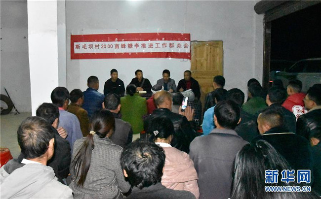11月15日夜,貴州省銅仁市沿河土家族自治縣后坪鄉(xiāng)斯毛壩村,下沉一線(xiàn)的縣、鄉(xiāng)干部及村干部組織村民商討產(chǎn)業(yè)結(jié)構(gòu)調(diào)整。新華社記者 段羨菊 攝