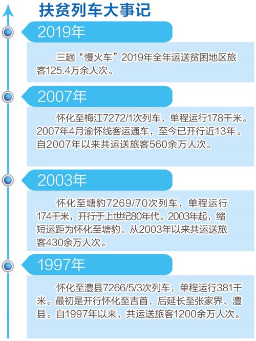 “慢火車(chē)”幾十年如一日運(yùn)行在湘渝黔武陵山區(qū),這里沿線聚居著苗、侗、土家族等少數(shù)民族,經(jīng)濟(jì)欠發(fā)達(dá),貧困程度深,是國(guó)家脫貧攻堅(jiān)的重點(diǎn)區(qū)域。為方便沿線百姓人、貨往來(lái)方便,列車(chē)允許乘客肩挑背扛大量山貨乘車(chē),更有不少學(xué)子靠乘坐慢火車(chē),走完求學(xué)之路。扶貧“慢火車(chē)”已成為山區(qū)困難群眾致富奔小康的希望之路。
