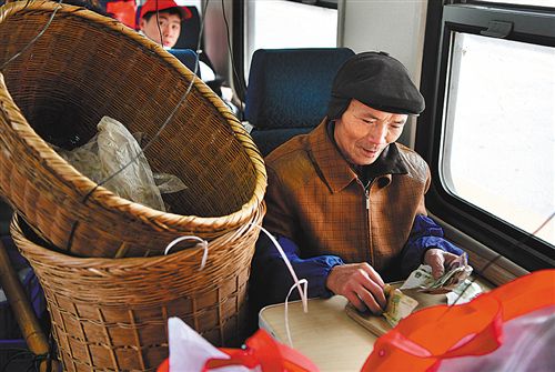 湖南省麻陽(yáng)苗族自治縣郭公坪鎮(zhèn)雙竹坡村74歲的黃前代,在乘坐的7271次列車(chē)上算賬。他每3天至4天乘坐火車(chē)去銅仁銷(xiāo)售一次農(nóng)副產(chǎn)品,每個(gè)月可收入2000多元。