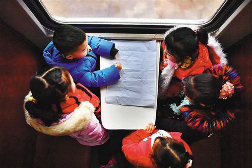 7269次列車(chē)上,幾位小學(xué)生在車(chē)廂里做作業(yè)。綠皮“慢火車(chē)”穿行在武陵山深處,為沿線百姓提供出行服務(wù)的同時(shí),也承擔(dān)著學(xué)生上下學(xué)“校車(chē)”的責(zé)任。
