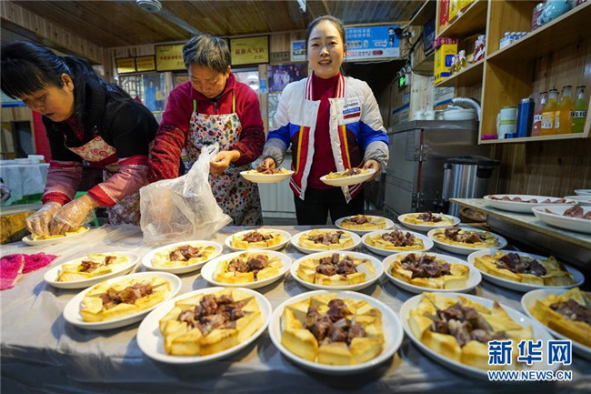 1月18日,中山古鎮(zhèn)的一戶商家在“千米長宴”開席前準備菜品。當日中午,伴隨著一聲“開席嘍”,一年一度的“千米長宴”在重慶市江津區(qū)中山古鎮(zhèn)舉行。噴香的煙熏豆腐、軟糯的夾燒肉、可口的石板糍粑……800余桌年味十足的特色美食,吸引了兩萬多名游客前來體驗傳統(tǒng)民俗,感受“一雙筷子吃遍一條街”的暢快淋漓。中山古鎮(zhèn)自古就有“千米匯長宴萬人祈福祉”的習(xí)俗。每年春節(jié)期間,古鎮(zhèn)老街居民都會在千米長街上大擺“百家宴”,祝福生意興隆、家業(yè)興旺、風(fēng)調(diào)雨順、五谷豐登。新華社記者劉潺攝