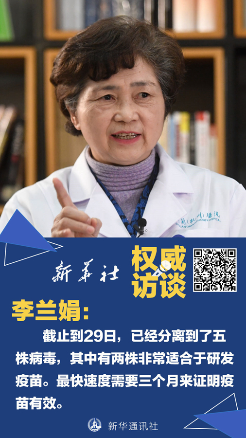 李蘭娟:研發(fā)疫苗第一步是要獲得病毒株。目前,我們已經(jīng)分離到了五株病毒,其中有兩株非常適合于研發(fā)疫苗。分離到種子株之后,還要把種子株的病毒在細(xì)胞中培養(yǎng),讓它長到一定的量,這就需要一個多月。大量的細(xì)胞病毒拿到了,還要進(jìn)行滅活,并對它的免疫原性如何,能不能預(yù)防、有沒有效果、有沒有毒力、會不會造成新的感染等開展實驗。