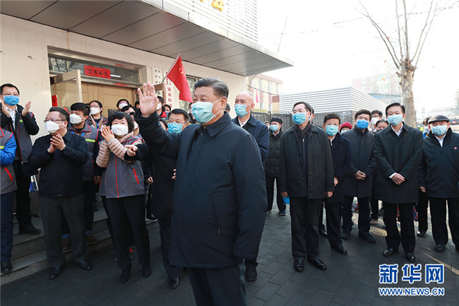 2月10日,中共中央總書記、國家主席、中央軍委主席習(xí)近平在北京調(diào)研指導(dǎo)新冠肺炎疫情防控工作。這是習(xí)近平來到朝陽區(qū)安貞街道安華里社區(qū),了解基層一線疫情聯(lián)防聯(lián)控情況。 新華社記者 鞠鵬 攝