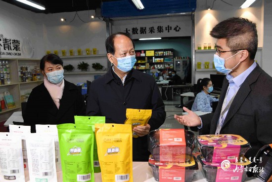 中小微企業(yè)和餐飲業(yè)受疫情影響較大,石泰峰高度關注。在金橋電子商務產(chǎn)業(yè)園,他通過觀看大數(shù)據(jù)監(jiān)測平臺、走訪商戶等方式,深入了解入駐企業(yè)經(jīng)營情況。在蒙清農(nóng)業(yè)電子商務運營中心,企業(yè)負責人展示了他們研發(fā)的適合“宅”在家食用的“蕎面自嗨鍋”,該產(chǎn)品在疫情期間投入市場后十分暢銷。石泰峰指出,疫情給很多行業(yè)帶來了沖擊和影響,但危中也有機。要主動應變求變,加大產(chǎn)品創(chuàng)新力度,挖掘新的消費熱點,培育新的消費模式,堅持線上線下雙輪發(fā)力,加快釋放新興消費潛力。在西貝莜面村,石泰峰走進餐廳,詳細了解防疫防控和堂食營業(yè)、訂單外賣等情況。餐飲企業(yè)對顧客用餐實行掃碼、測溫、登記,顧客就餐保持規(guī)定距離、實行分餐,石泰峰要求把這些嚴格的防控措施切實落實到位。他強調(diào),有關部門要加強服務指導,推動符合條件的餐飲企業(yè)和店鋪積極有序復工,確保各個環(huán)節(jié)都安全可控。他還隨機走進多家臨街餐館,檢查防疫措施,詢問員工返崗和營業(yè)情況。