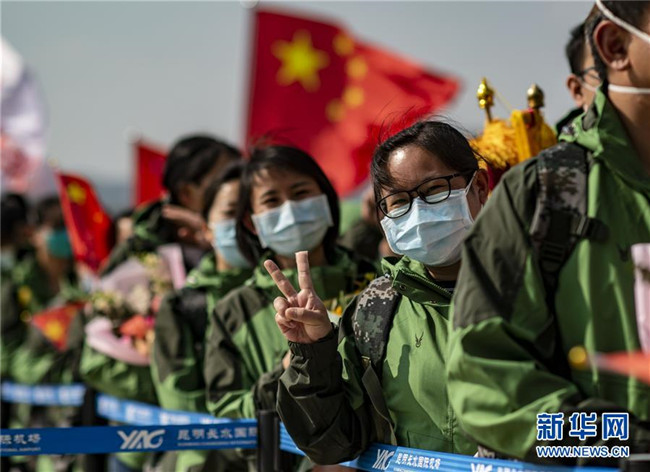 當(dāng)日,云南省援鄂醫(yī)療隊(duì)700余名醫(yī)護(hù)人員乘坐包機(jī)抵達(dá)昆明長水機(jī)場。至此,除按照國家衛(wèi)健委統(tǒng)一安排繼續(xù)堅(jiān)守湖北的23名疾控防疫人員外,云南省援鄂醫(yī)療隊(duì)全員平安返回。