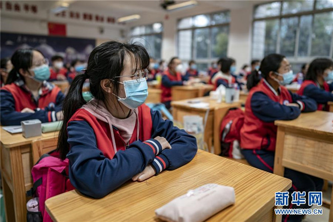 3月23日,昆明市第一中學(xué)高三年級學(xué)生在教室里上疫情防控第一課。新華社記者 江文耀 攝