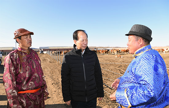 3月23日,自治區(qū)黨委書記、人大常委會主任石泰峰來到赤峰市克什克騰旗達來諾日鎮(zhèn)崗更嘎查西門塔爾牛養(yǎng)殖專業(yè)合作社,了解帶動已脫貧戶穩(wěn)定長效增收情況。內蒙古日報社融媒體記者 袁永紅 攝
