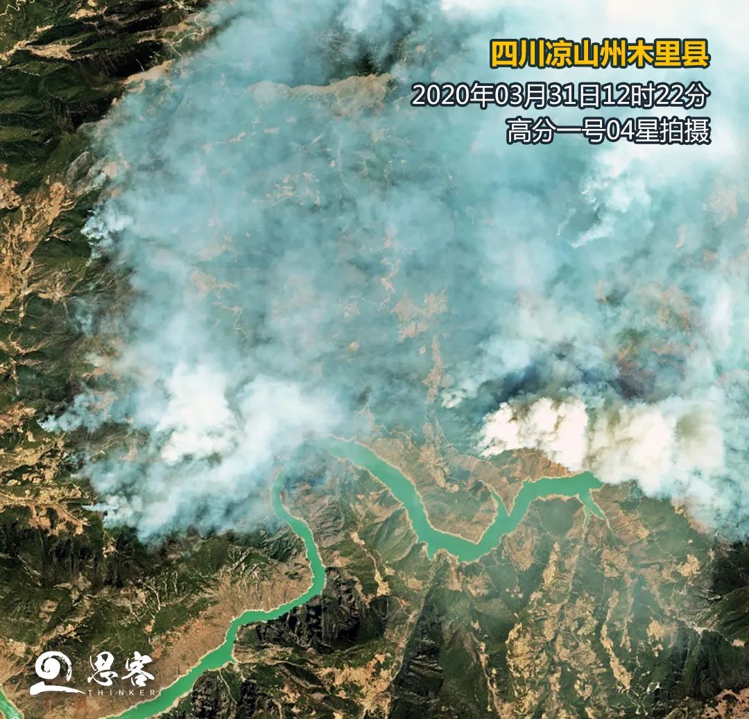 ▲衛(wèi)星遙感監(jiān)測四川涼山州森林大火。衛(wèi)星數據來源:高分一號