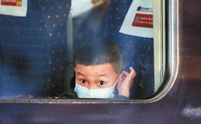 4月8日,在武漢站,一名小乘客從G431次列車上向窗外張望。新華社記者 沈伯韓 攝