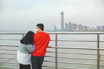 4月8日,一對(duì)情侶在長(zhǎng)江客運(yùn)輪渡上欣賞江景。新華社記者 沈伯韓 攝