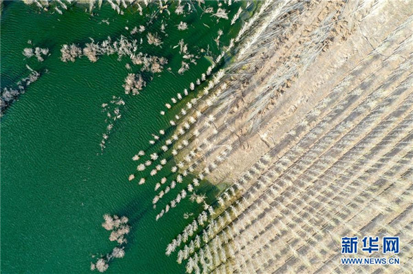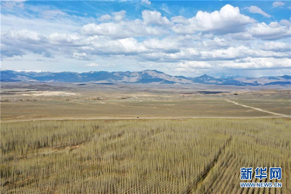 近年來,新疆阿勒泰市利用經(jīng)污水處理廠處理達標后的中水,灌溉建在戈壁灘上的苗圃基地,形成良性循環(huán),助力綠化工程,改善生態(tài)環(huán)境。從2017年至今,阿勒泰市中水回用環(huán)境治理示范園已為當?shù)鼐G化工程提供40萬株樹苗,實現(xiàn)5000畝荒山綠化。新華社記者丁磊攝