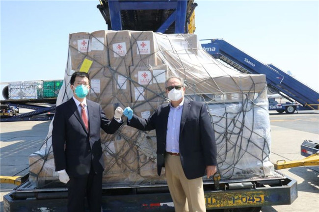 4月26日,中國政府援秘抗疫物資交接儀式在秘魯舉行。圖片來源:中國駐秘魯大使館網(wǎng)站