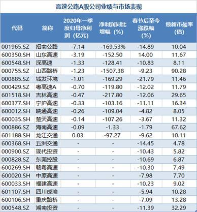 在疫情之下,交通企業(yè)普遍虧損。從高速公路企業(yè)來說,客運量驟減和免費政策的雙重夾擊之下,他們經(jīng)歷了長達79天的“至暗時刻”。同花順數(shù)據(jù)顯示,A股高速公路板塊總計有21家上市公司。截至4月30日,共有16家發(fā)布了第一季度業(yè)績報告,其中有14家公司營收、凈利潤雙雙下滑。與此同時,還有高速公路概念股的同期普遍下跌。