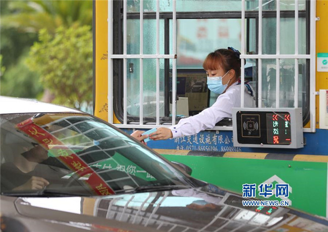 5月6日,貴州省銅仁市玉屏侗族自治縣滬昆高速玉屏收費站的收費員在收取過往車輛過路費。 交通運輸部4月28日發(fā)布關于恢復收費公路收費的公告,經(jīng)國務院同意,自2020年5月6日零時起,經(jīng)依法批準的收費公路恢復收費(含收費橋梁和隧道)。 新華社發(fā)(胡攀學 攝)