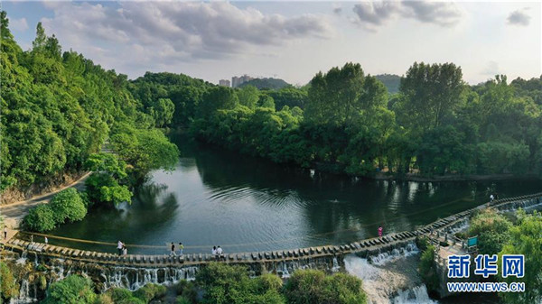 5月19日,游客在貴陽(yáng)市花溪國(guó)家城市濕地公園黃金大道游玩。近日,貴州省貴陽(yáng)市花溪國(guó)家城市濕地公園黃金大道綠意盎然,美景如畫。新華社記者歐東衢攝