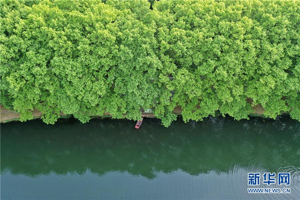 這是5月19日拍攝的貴陽(yáng)市花溪國(guó)家城市濕地公園黃金大道(無人機(jī)照片)。近日,貴州省貴陽(yáng)市花溪國(guó)家城市濕地公園黃金大道綠意盎然,美景如畫。新華社記者歐東衢攝