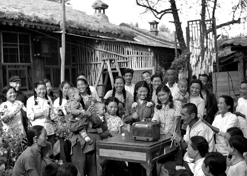 1954年9月15日至28日,第一屆全國(guó)人民代表大會(huì)第一次會(huì)議在北京召開。圖為北京郊區(qū)農(nóng)民收聽會(huì)議實(shí)況轉(zhuǎn)播的情形。