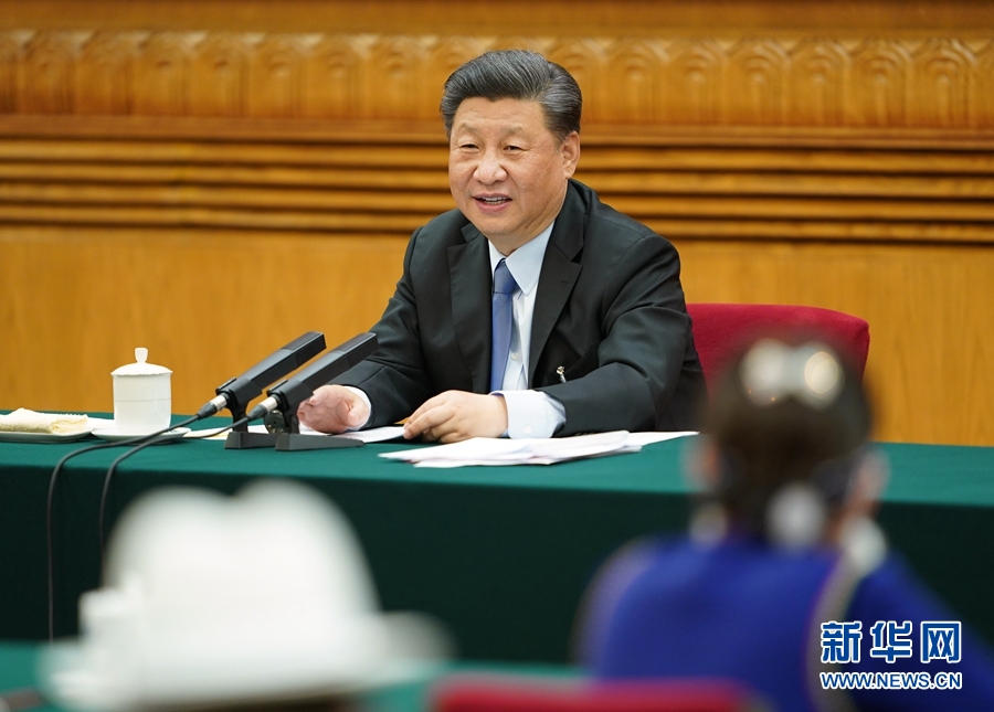 5月22日,中共中央總書記、國家主席、中央軍委主席習(xí)近平參加十三屆全國人大三次會議內(nèi)蒙古代表團(tuán)的審議。 新華社記者 黃敬文 攝