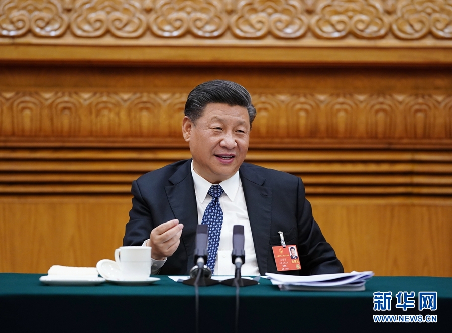 5月24日,中共中央總書(shū)記、國(guó)家主席、中央軍委主席習(xí)近平參加十三屆全國(guó)人大三次會(huì)議湖北代表團(tuán)的審議。 新華社記者 李學(xué)仁 攝