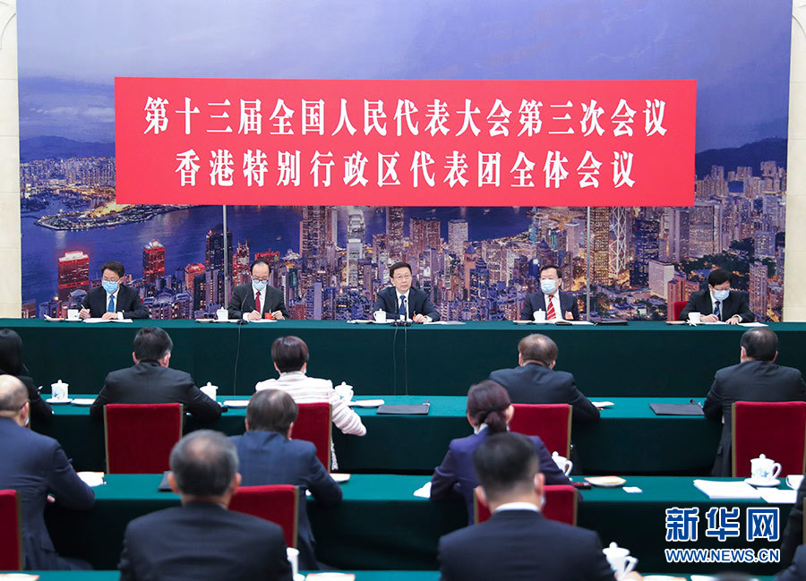 5月24日,中共中央政治局常委、國(guó)務(wù)院副總理韓正參加十三屆全國(guó)人大三次會(huì)議香港代表團(tuán)的審議。 新華社記者 姚大偉 攝