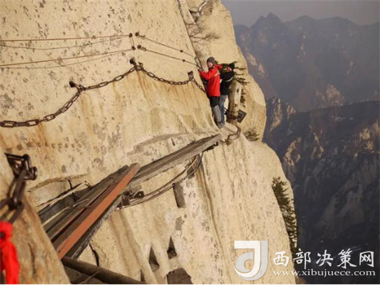 長空棧道位于華山南峰東側(cè)山腰,是華山派第一代宗師元代高道賀志真為遠(yuǎn)離塵世靜修成仙,在萬仞絕壁上鑲嵌石釘搭木椽而筑。棧道上下皆是懸崖絕壁,鐵索橫懸,由條石搭成尺許路面,下由石柱固定,游人至此,面壁貼腹,屏氣挪步,被喻為“華山第一天險(xiǎn)”。不過經(jīng)歷了新冠病毒的考驗(yàn),真的不知道這對于偉大的醫(yī)護(hù)人員來說算不算險(xiǎn)。