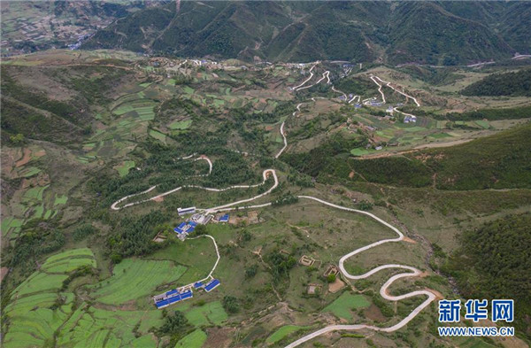金陽縣天地壩鎮(zhèn)通往吉史里口村易地扶貧搬遷集中安置點的道路(6月7日攝,無人機照片)。坐落在金沙江畔的四川省金陽縣是國家級深度貧困縣,境內群山連綿起伏,海拔落差大,眾多村寨處于高山或者高半山上,道路施工難度大。近年來,當地政府將交通作為脫貧攻堅的先導性工程,路越修越寬、越修越好,成為當地群眾的脫貧致富路。截至2019年底,金陽縣實現所有鄉(xiāng)鎮(zhèn)通油路、建制村通硬化路,鄉(xiāng)道里程達329.9公里,村道里程達866.8公里。新華社記者江宏景攝