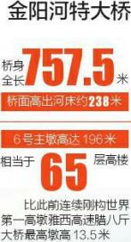 金陽(yáng)河特大橋所在地不僅峽谷深切,而且地震烈度高,需按9級(jí)設(shè)防。為讓大橋順利跨越溝谷,3個(gè)高度超過100米的墩柱,采用了四川公路設(shè)計(jì)院自創(chuàng)的鋼管混凝土組合格構(gòu)墩,減少自重的同時(shí)又增加了承載力度。其中,金陽(yáng)河特大橋6號(hào)主墩高達(dá)196米,相當(dāng)于65層高樓,比此前連續(xù)剛構(gòu)世界第一高墩雅西高速臘八斤大橋最高墩高13.5米。