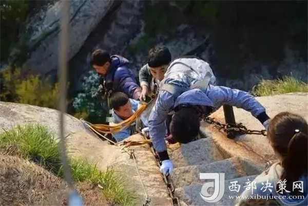 喜歡攀巖徒步,似乎是很多老外的一種標志性運動。幾個熱愛徒步攀巖的老外,在華山的棧道上擺pose,挑戰(zhàn)這種世界上最危險的徒步棧道。