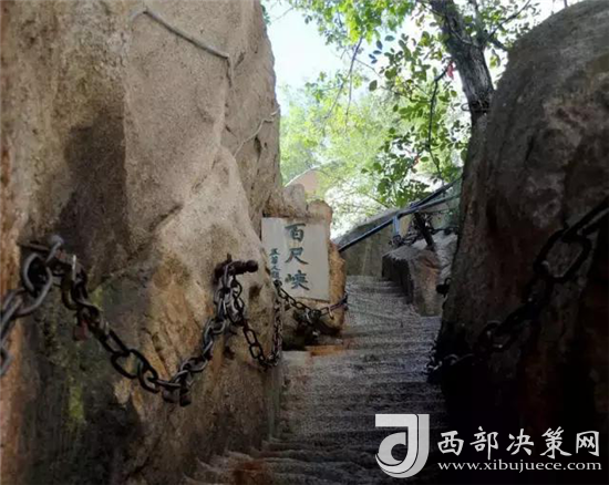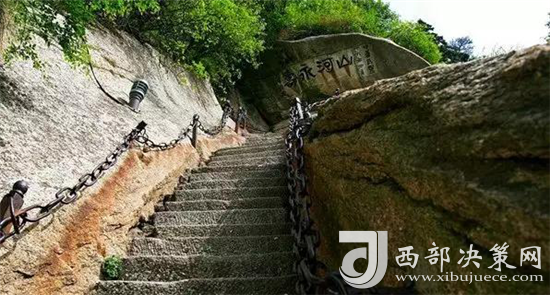 玉泉院出發(fā)直上到達華山門(步行登山路入口)。徒步經(jīng)五里關(guān)、莎蘿萍、毛女洞、青柯萍、回心石、千尺幛、百尺峽、群仙觀、老君犁溝后,到達北峰。全長約6公里,耗時3小時左右。
