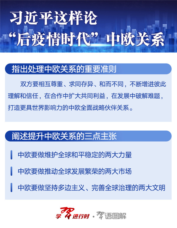 時(shí)隔6天,在以視頻方式會(huì)見歐洲理事會(huì)主席米歇爾和歐盟委員會(huì)主席馮德萊恩時(shí),習(xí)近平再次提出,“推動(dòng)‘后疫情時(shí)代’中歐關(guān)系更加穩(wěn)健成熟”。