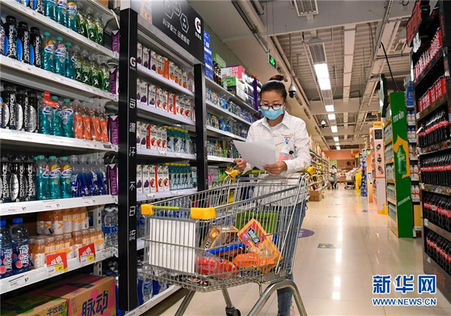 7月18日,在烏魯木齊市新市區(qū)一大型超市內,工作人員按照訂單挑選商品,商品將由配送人員送達顧客。 新華社記者 宋彥樺 攝