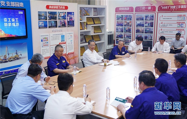 7月19日至22日,中共中央政治局常委、中央紀(jì)委書記趙樂際到江蘇調(diào)研。這是7月20日,趙樂際在徐工集團(tuán)徐州重型機(jī)械有限公司與職工代表座談交流。 新華社記者 張領(lǐng) 攝