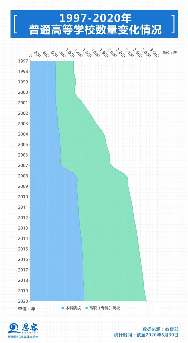 截至2020年6月30日,全國(guó)有普通高等學(xué)校2740所,含本科院校1258所、高職(專科)院校1482所。2000多所高校是怎樣分布的呢?