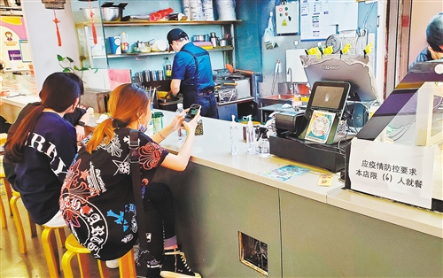 北京中關(guān)村食寶街內(nèi)一家小吃門(mén)店限流營(yíng)業(yè)。記者 吉蕾蕾攝