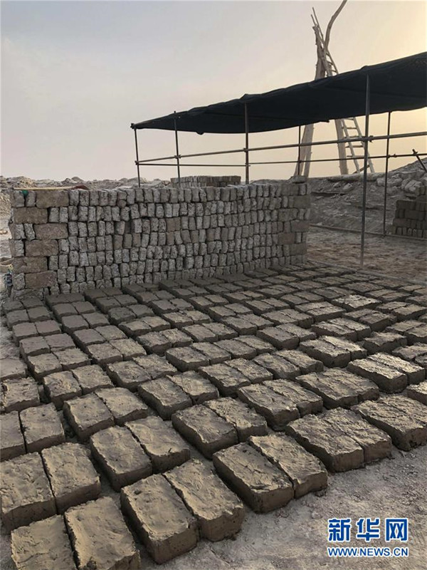 工作人員選取樓蘭古城外圍的土料制備的土坯(6月23日攝,手機照片)。新華社發(fā)(中鐵西北科學(xué)研究院有限公司提供)