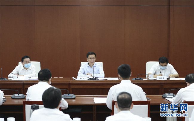 8月18日,中共中央政治局常委、國務(wù)院副總理韓正在國家石油天然氣管網(wǎng)集團(tuán)有限公司調(diào)研并主持召開座談會。 新華社記者 丁海濤 攝
