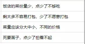 這與中餐分量多少、口味變化較難精準確定有關(guān)。比如一道東北亂燉的分量可能比一桌子廣式早茶的分量還大。因此,不少人很難在餐館里精準點餐。