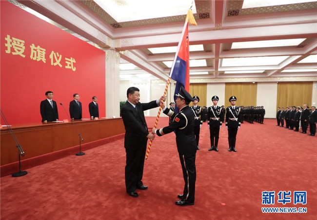 習(xí)近平向中國(guó)人民警察隊(duì)伍授旗并致訓(xùn)詞強(qiáng)調(diào) 對(duì)黨忠誠(chéng)服務(wù)人民執(zhí)法公正紀(jì)律嚴(yán)明 堅(jiān)決完成黨和人民賦予的使命任務(wù) 王滬寧韓正出席