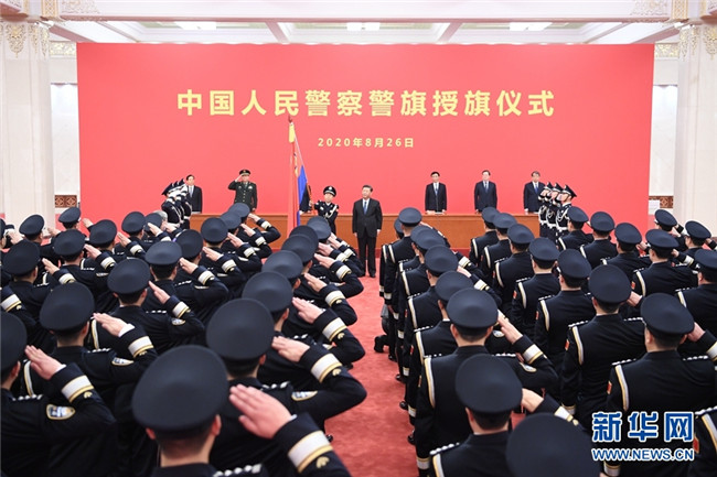 8月26日,中國(guó)人民警察警旗授旗儀式在人民大會(huì)堂舉行。中共中央總書記、國(guó)家主席、中央軍委主席習(xí)近平向中國(guó)人民警察隊(duì)伍授旗并致訓(xùn)詞。 新華社記者 張領(lǐng) 攝