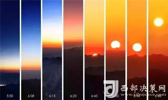 是時(shí),但見(jiàn)夜幕自東方悄然隱退,晨曦初露,漸漸霞光瑰麗,云海奔涌。