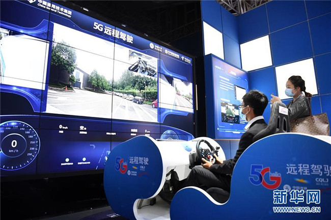9月15日,工作人員在2020線上智博會上演示“5G遠程駕駛技術(shù)”。 新華社記者 唐奕 攝