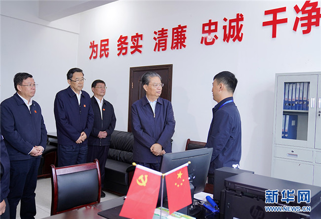 這是9月14日,趙樂(lè)際在貴州省畢節(jié)市威寧縣二塘鎮(zhèn)機(jī)關(guān),詳細(xì)了解巡視巡察工作情況。 新華社記者 張領(lǐng) 攝