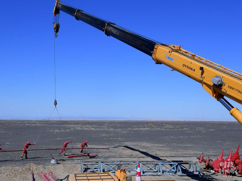 △克拉瑪依地區(qū),油田勘探開發(fā)施工現(xiàn)場。