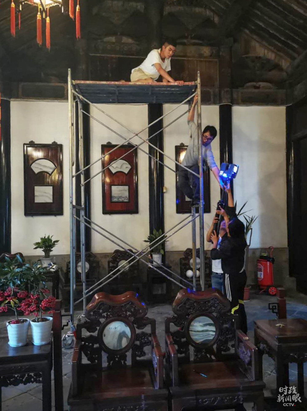 △北大考古文博學(xué)院學(xué)生架設(shè)三維掃描儀,開(kāi)展文物建筑考古與測(cè)試實(shí)習(xí)。
