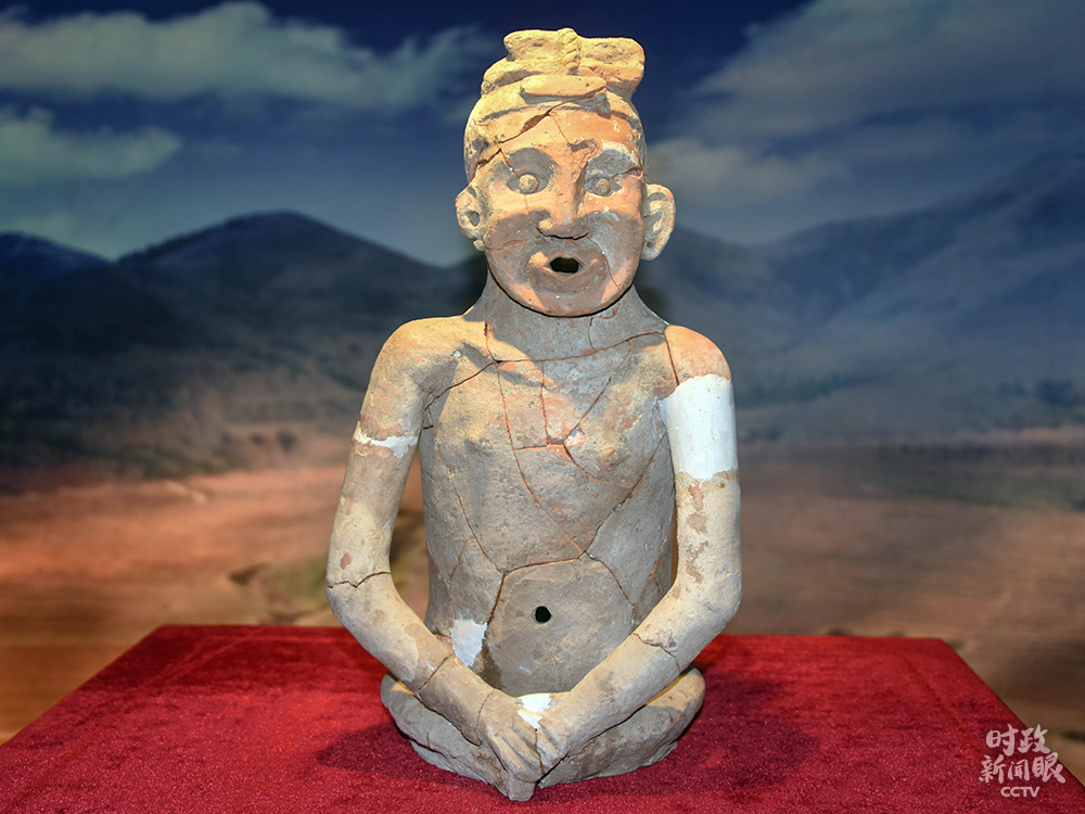 △這是修復(fù)后的整身紅山文化陶人,人像通高55厘米。這尊寫(xiě)實(shí)人像距今約5300年,是中華五千年文明的一個(gè)實(shí)證。