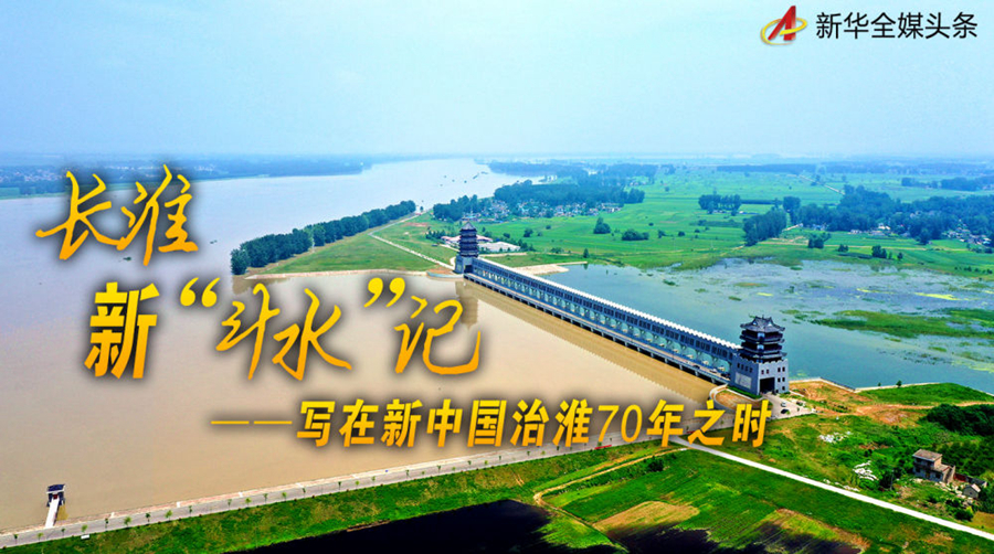 水患水難頂在淮河百姓頭上,黨中央把它放在心頭;水憂水盼寫在淮河百姓臉上,黨中央攻堅克難不斷推進(jìn)治水行動。除害興利、造福于民,70年治淮初心不改。